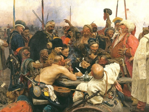 На известной картине Ильи Репина, не особо стесняясь в выражениях, образованнейшая часть запорожского казачества (иначе как бы письмо написали) доходчивым языком отказывают турецкому султану в праве ими распоряжаться. Собравшиеся для составления дипломатического послания выражали сомнение в том, что он, согласно полученному от него письму, непобедимый рыцарь, «брат солнца и луны, внук и наместник божий». Аргументы у них, конечно, были под стать эпохе («какой ты к чёрту рыцарь, когда голой ж… ежа не убьёшь»). Но характер реакций на турецкое самомнение очень даже отражают.