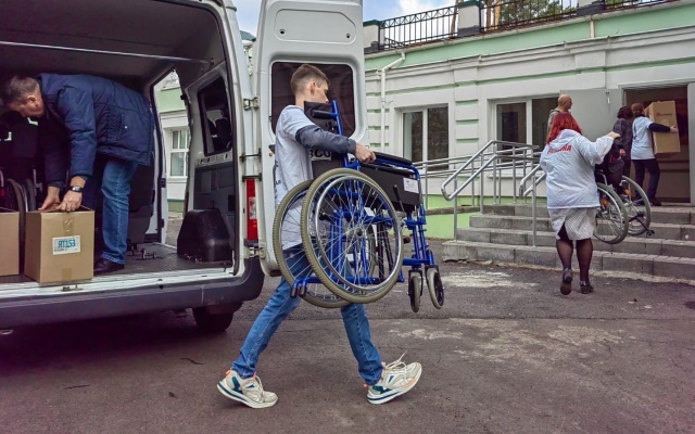 Депутат Госдумы, председатель партии "РОДИНА" Алексей Журавлев в преддверии Дня инвалида вручил инвалидные кресла-коляски Социально-реабилитационному центру "Серебряный Бор".