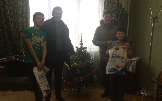 Артем Чекмарев, Иван Каменев и Полина Сысоева встретились с ребятами, вручили каждому сладкие подарки и поздравили с наступающими праздниками от депутата Алексея Журавлева.
