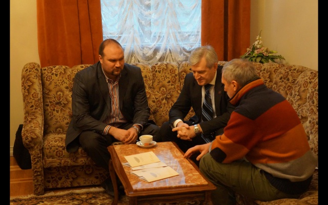 Сегодня, 30 января, председатель партии "РОДИНА", депутат Госдумы Алексей Журавлёв в Донецке встретился с министром образования ДНР Игорем Костенком и министром культуры Александром Парецким.