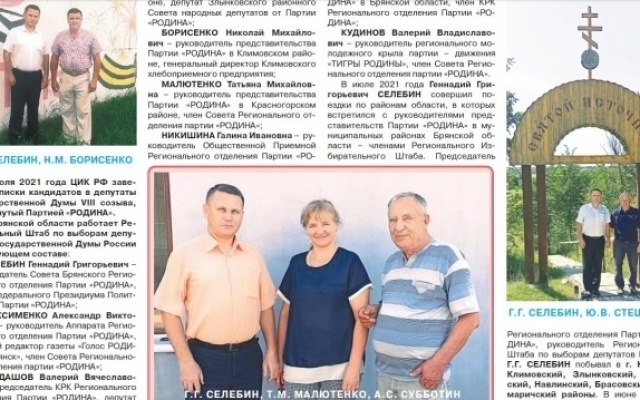 Свежий выпуск газеты можно читать по ссылке "Голос РОДИНЫ. Брянск"