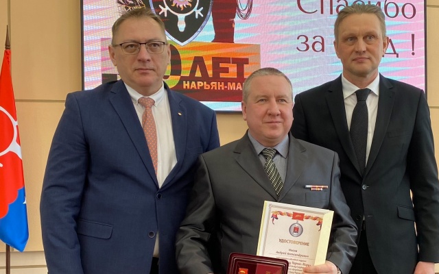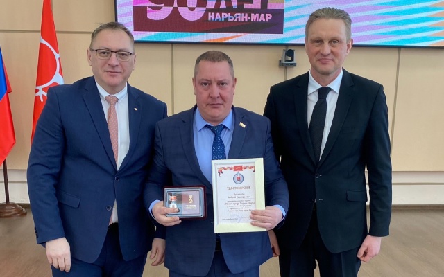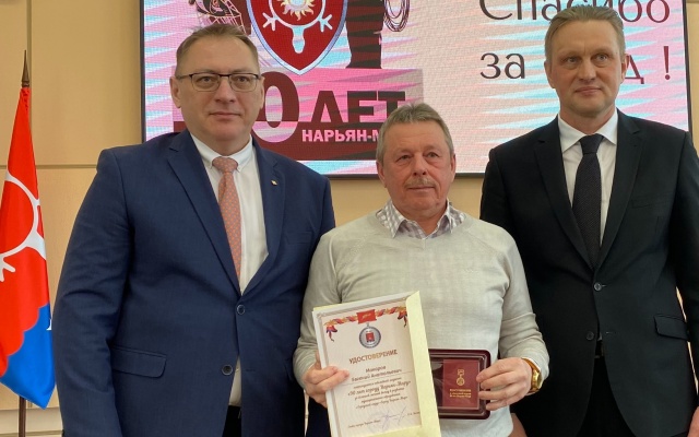 Глава города Нарьян-Мар Олег Белак в торжественной обстановке наградил юбилейной медалью "90 лет городу Нарьян-Мару" за активное участие в становлении и развитии ветеранского движения наших соратников.