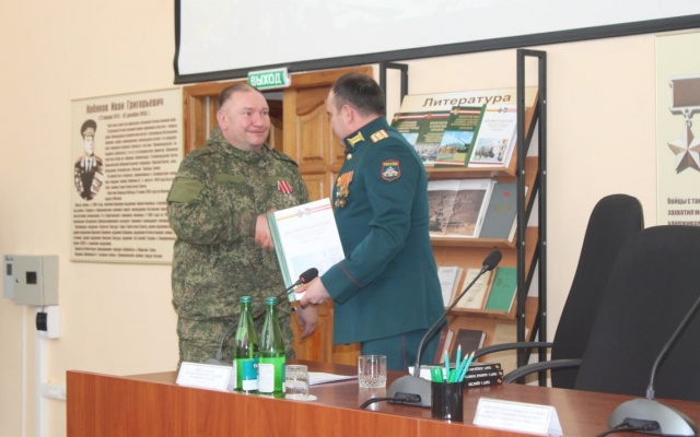 На память "Дядька" подарил училищу флаг и шевроны батальона БАРС 3 "Родина".