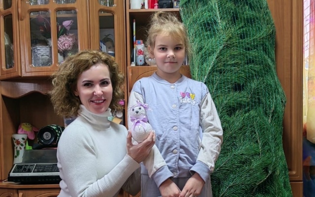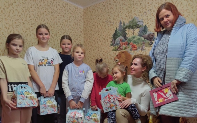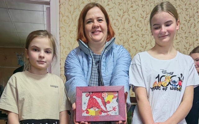 Сестры подготовили для депутата ответный подарок – младшие девочки с помощью родителей смастерили милого снеговичка, а старшие собрали алмазную мозаику с помощниками Деда Мороза – гномами.