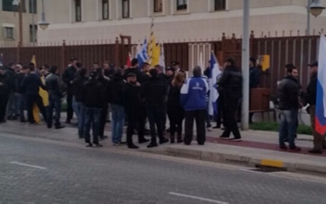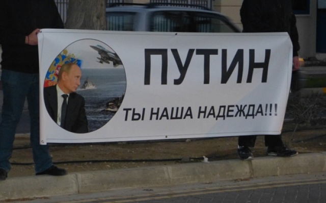 "Путин - наша надежда!" - под таким лозунгом у посольства РФ на Кипре состоялась акция солидарности греков-киприотов с Россией и русским народом.