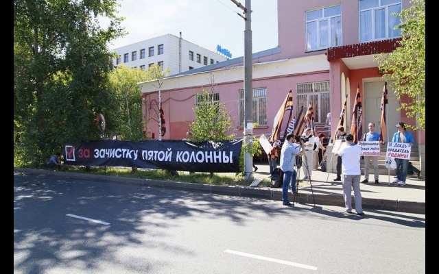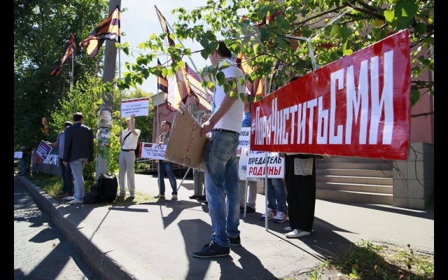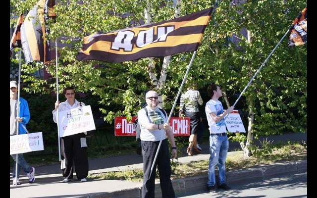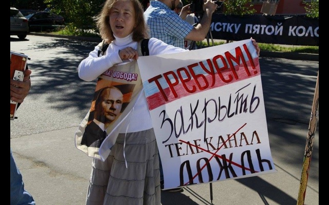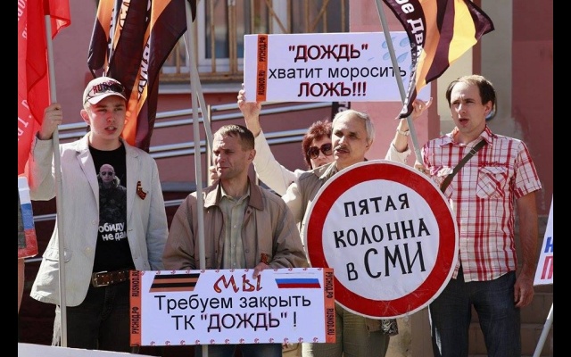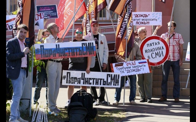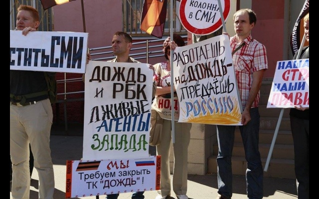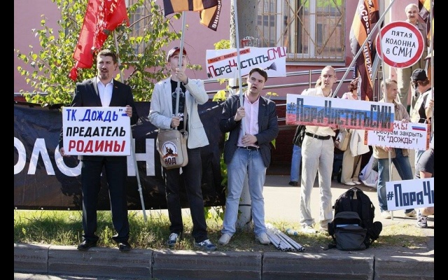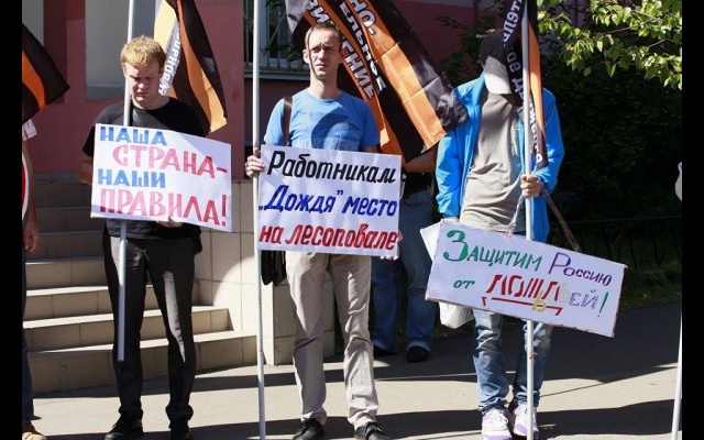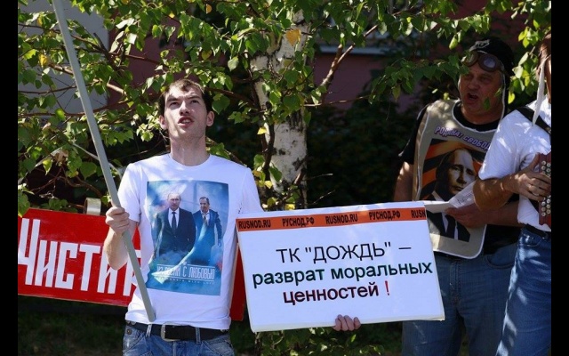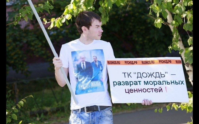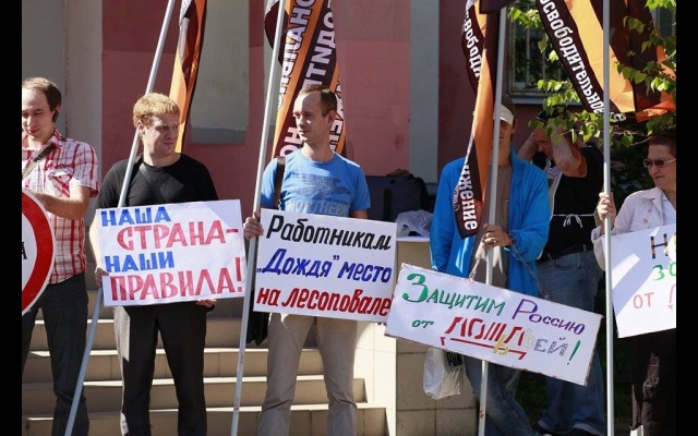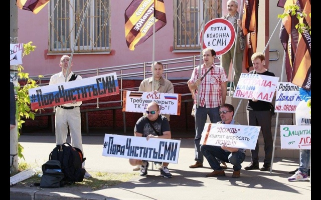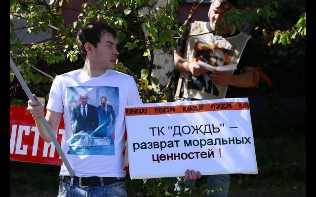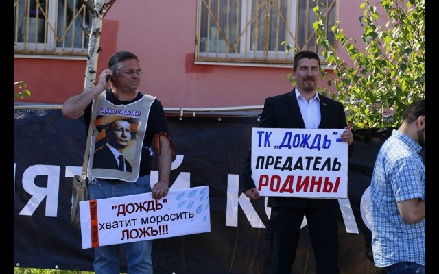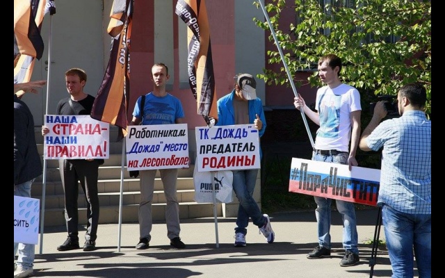 "Телеканал "Дождь" вещает и наполняет ложью и провокациями информационное поле России. Именно здесь они реализуют планы Госдепа направленные против нашей страны и нашего народа. Нельзя быть равнодушным к этому", - заявили пикетчики.