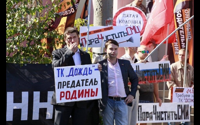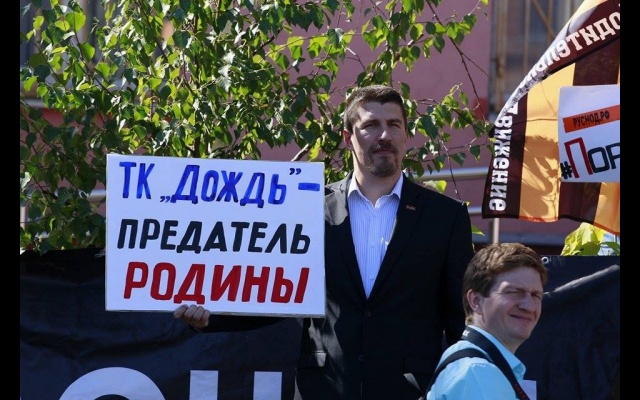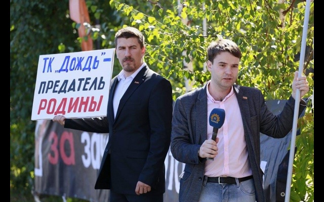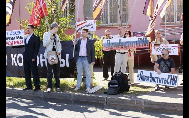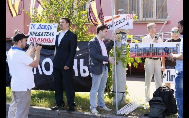 21 августа соратники партии "РОДИНА" вместе с активистами Национально-освободительного движения (НОД) приняли участие в массовом пикете у офиса телеканала "Дождь".