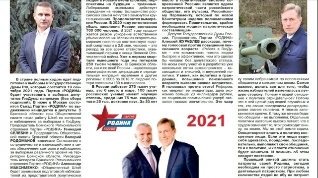 Свежий выпуск газеты можно читать по ссылке "Голос РОДИНЫ. Брянск"