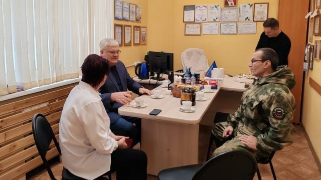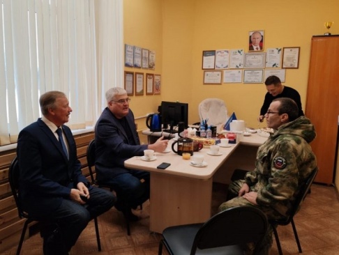 Депутат от партии "РОДИНА" в Заксобрании Новосибирской области Вячеслав Илюхин и депутат Совета Новосибирска от партии "РОДИНА" Леонид Рыбин встретились с участником СВО.