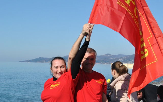 23 февраля сочинские патриоты местного отделения партии "РОДИНА" отметили заплывом в море под девизом: "Родине нужны сильные защитники!"