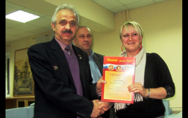 Лидер челябинской "РОДИНЫ" Фёдор Юрин вручил грамоты партии "РОДИНА" членам челябинского Дома ученых, активно помогавшим кандидату в депутаты от партии "РОДИНА" Олегу Авилову на муниципальных выборах 14 сентября 2014 года.