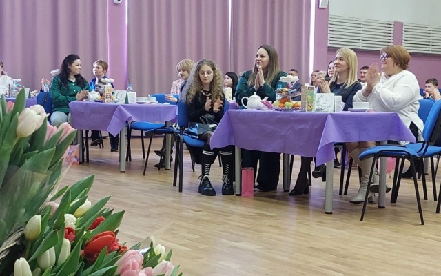 Сотрудники гимназии № 2 провели экскурсию по школе, после чего жён, матерей, сестёр и дочерей участников СВО ждал праздничный концерт и поздравления с наступающим праздником весны.
