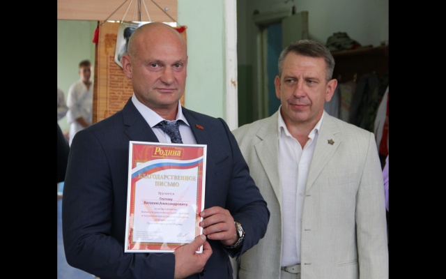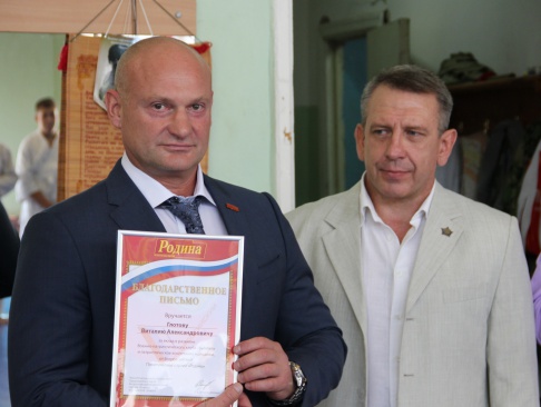 Сергей Мирошниченко и Виталий Глотов вручили почетным гостям турнира памятные подарки и благодарственные письма партии за вклад в военно-патриотическое воспитание молодежи.