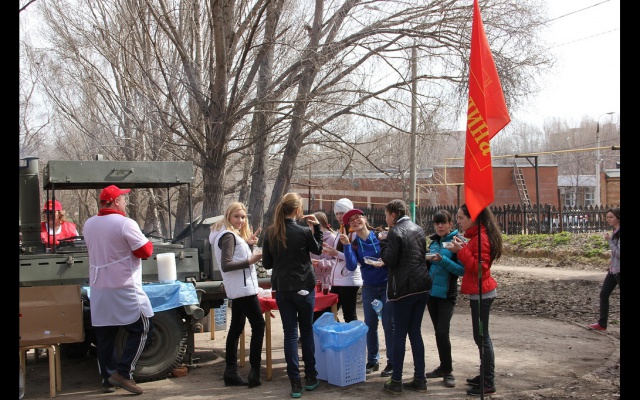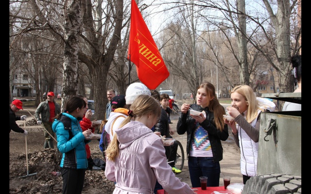 Особенно активно трудились многочисленные школьники и лицеисты из близлежащих учебных заведений. Выработав свою норму на близлежащем участке, они с энтузиазмом принимали участие в конкурсах, посвященных теме Родины – стихотворном, песенном, танцевальном, конкурсе рисунка. А потом, разгоряченные и уставшие, они с аппетитом уплетали армейскую гречневую кашу, приготовленную на полевой кухне, запивая ее душистым сладким чаем. К ребятам, делая небольшие перерывы в работе, охотно присоединялись и взрослые.