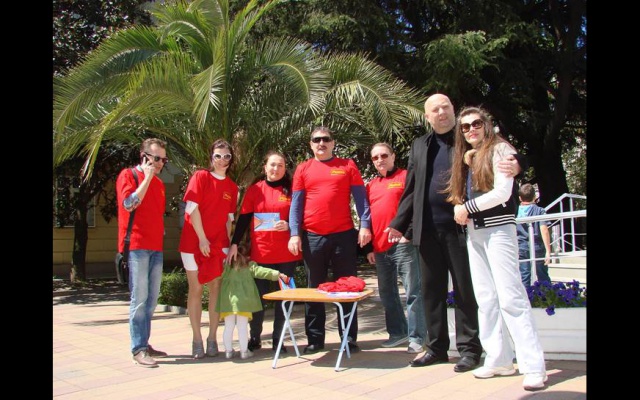 Сочинцы провели акцию "Нерушимый Союз" на площади у кинотеатра "Родина". Всем, подписавшим поздравительные открытки вручались футболки с символикой партии "РОДИНА".