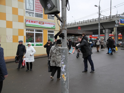 Активисты из ЮЗАО выставили возле выхода из метро "Теплый стан" агитационную конструкцию, на трех сторонах которой начертаны лозунги партии "РОДИНА": "Москва - русский город!", "Хорошо русским - хорошо всем!", "Коррупция - национальная измена!", "Очистим город от нелегалов!", "Партий много - "РОДИНА" одна!", ""РОДИНА" - за народ!".