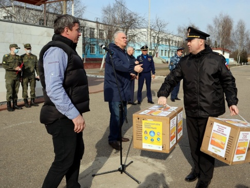 Председатель Ярославского отделения партии "РОДИНА" Тарас Сидорин совместно с главой регионального исполкома ОНФ в Ярославской области Игорем Ямщиковым приняли участие в акции #МыВместе и вручили всему парадному расчету Ярославского гарнизона 4000 тысячи медицинских масок.