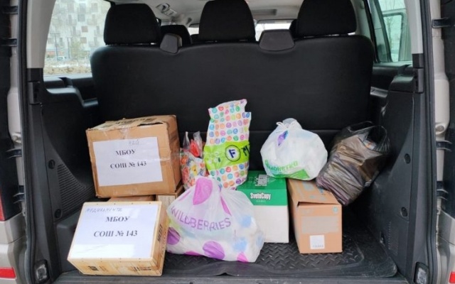 Ученики и педагоги школ №№143 и 184 г. Новосибирска собрали и передали в Клуб избирателей депутата Заксобрания Новосибирской области от партии "РОДИНА" Вячеслава Илюхина гуманитарную помощь для воинов, выполняющих задачи специальной военной операции.