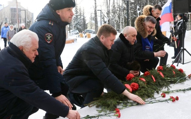 В преддверии празднования Дня защитника Отечества глава Чебоксарского округа, председатель Чувашской "РОДИНЫ" Владимир Михайлов в поселке Кугеси возложил цветы к памятнику погибшим воинам-землякам.