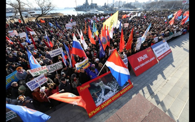 В столице Приморья на Корабельной набережной состоялся "Народный сход за братский народ" в поддержку крымчан и в защиту конституционных прав русскоязычного населения Украины.