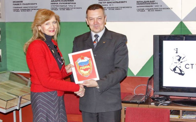 Перед началом конференции член бюро, председатель идеологической комиссии Совета регионального отделения партии "РОДИНА" в Челябинской области вручил директору музея трудовой и боевой славы ЧТЗ Надежде Дида фотоальбом о проведённых за 2013 год совместных мероприятиях патриотической направленности.