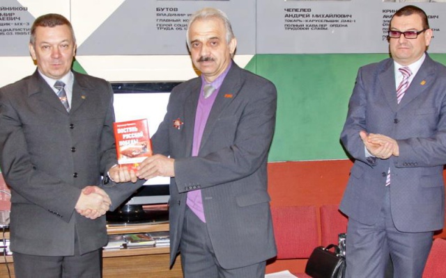 Фёдор Юрин подарил Сергею Седневу книгу Александра Проханова "Поступь русской победы", в которой знаменитый писатель, принявший участие в учреждении социально-патриотического клуба "СТАЛИНГРАД" в Москве, начертал идеологические контуры сегодняшнего Государства Российского, отказавшегося от своей идеологии и подставившегося под удар чуждой нам идеологии либерализма, разъедающей, как ржавчина, наше общество.