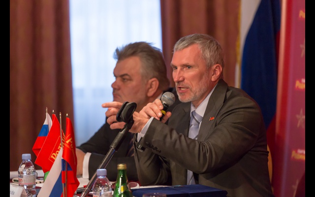 Лидер российских социал-патриотов Алексей Журавлёв выступил с докладом о текущей политической ситуации в стране и мире. Соединенные Штаты утрачивают своё влияние, и поэтому всеми силами стараются подчинить Россию своим интересам, вводя экономические и политические санкции, отметил он. Так как для России сохранение независимости является фактом выживания, то поэтому на все враждебные выпады Запада происходит консолидация народа России в поддержке политики лидера государства.