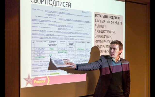Роман Лобзин, председатель Центральной Контрольно-ревизионной комиссии, в своём выступлении обратил внимание партийцев на то, что "РОДИНА" развивается, и если в 2013 году она конкурировала с непарламентскими партиями, то в 2014 году составила конкуренцию партиям парламентским".